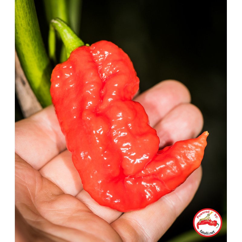 This unusual variety produces very big and extremely hot pods with a scary but very fantastic fruitful aroma. The plants are very tall and can bear a lot of pods every season.