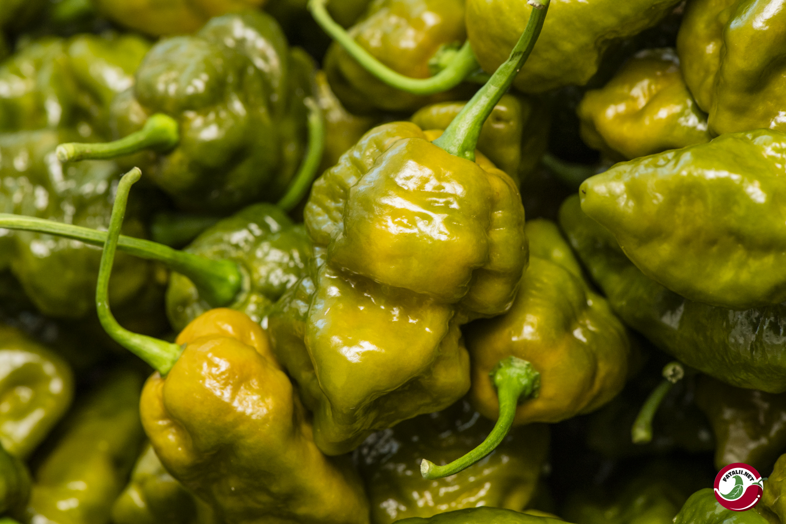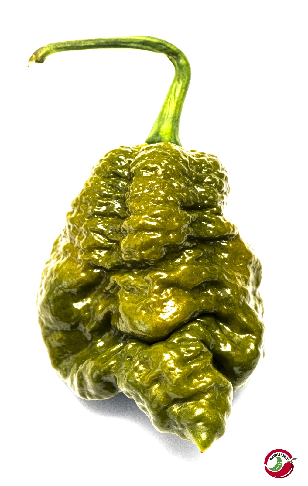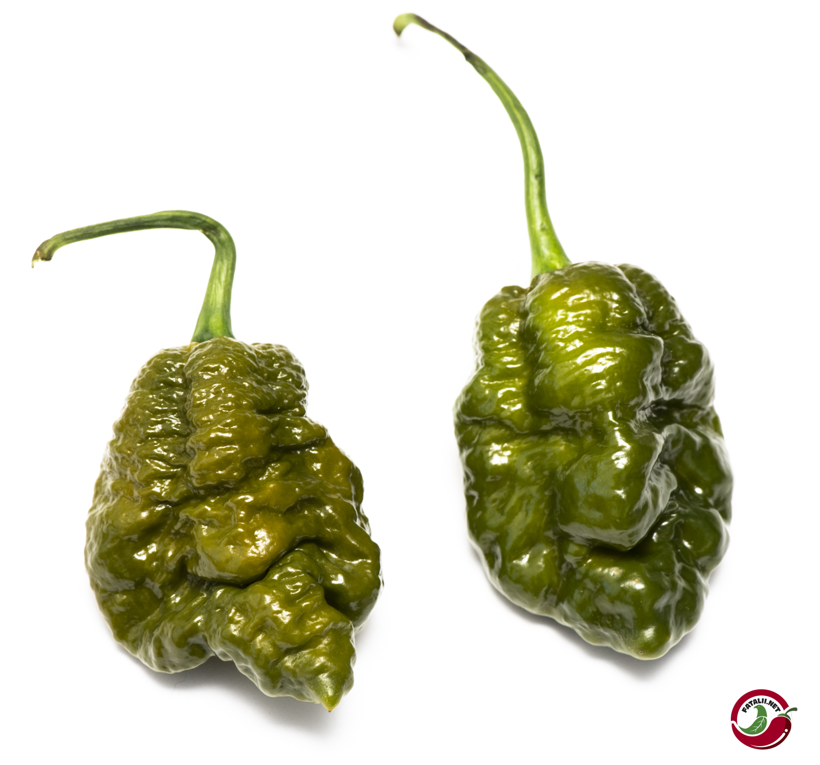 The Borg9 Green pepper is a bold and vibrant variant of the original Borg9 Yellow, known for its eye-catching green, bumpy pods and blistering heat, reaching over 1,000,000 Scoville Heat Units. Not fully stabilized variety yet. The original Borg9 Yellow was developed by Faddas Pepper.