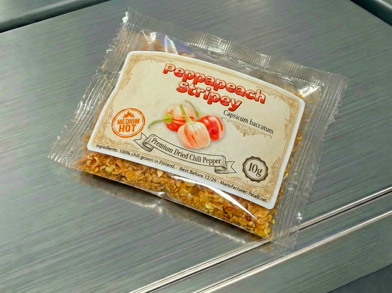 Unlike many chilies that announce themselves through heat alone, Peppapeach Stripey is about balance. The heat sits in the mild-to-medium range, allowing the variety’s natural character to remain in focus. When dried carefully, its aroma becomes even more defined — clean, bright, and layered — making it an exceptional chili for cooks who value nuance over force.