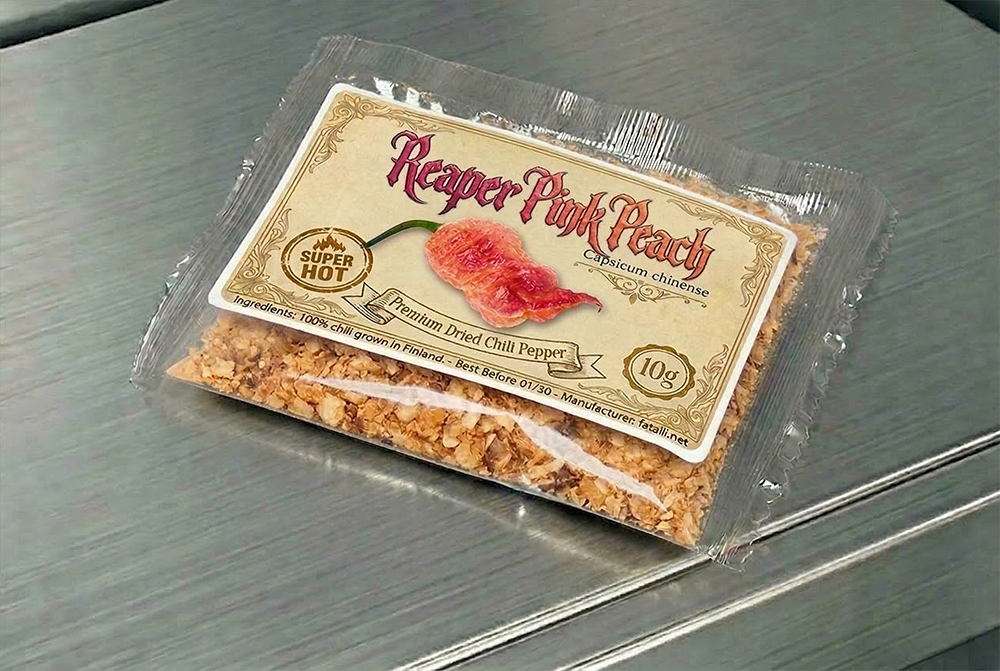 This Vault batch is produced in small quantity from Finnish-grown plants. The pods are harvested at full ripeness and carefully dried to preserve both the delicate aromatic top notes and the structural heat compounds that define the Carolina Reaper lineage. No smoke or additional processing — the intention is to present the variety as cleanly and honestly as possible.