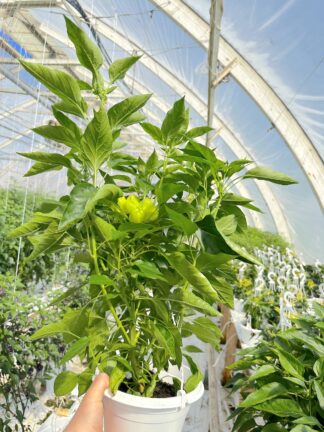 This pretty large, thick-walled habanero variety is a real showstopper! Not only does it produce bountiful pods, but each one is packed with unforgettable flavor. The bright yellow-orange pods are both visually striking and incredibly tasty, adding a burst of color and heat to your garden or kitchen.