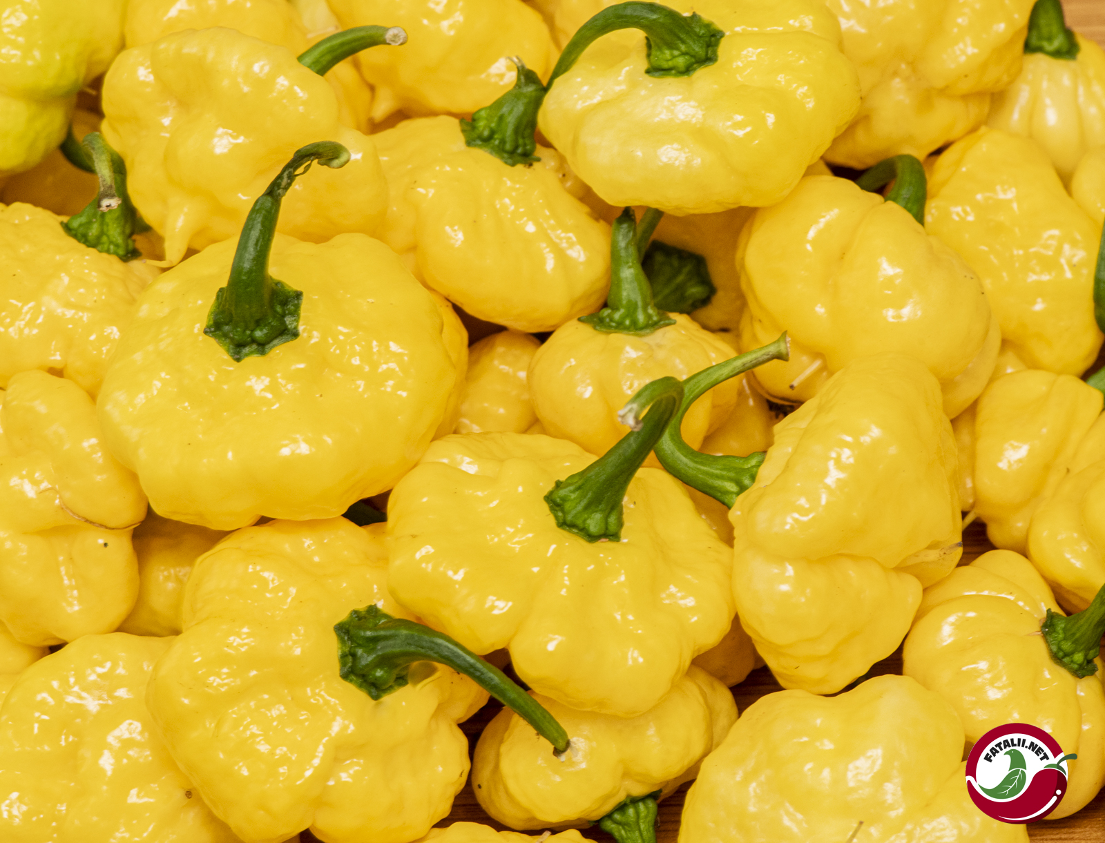 The pods ripen to a striking lemon-yellow and take on a beautiful bonnet-style shape, often with a sharp little stinger at the base. The flavor is absolutely spectacular: a clean burst of citrus and lemony brightness with just the right touch of sweetness and subtle floral notes. It’s one of those rare peppers where the taste is as exciting as the heat.