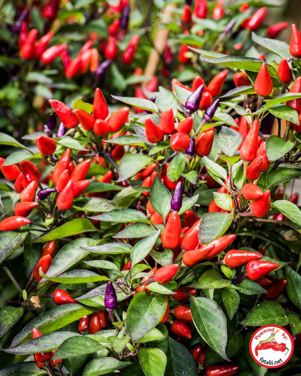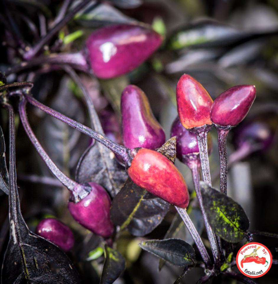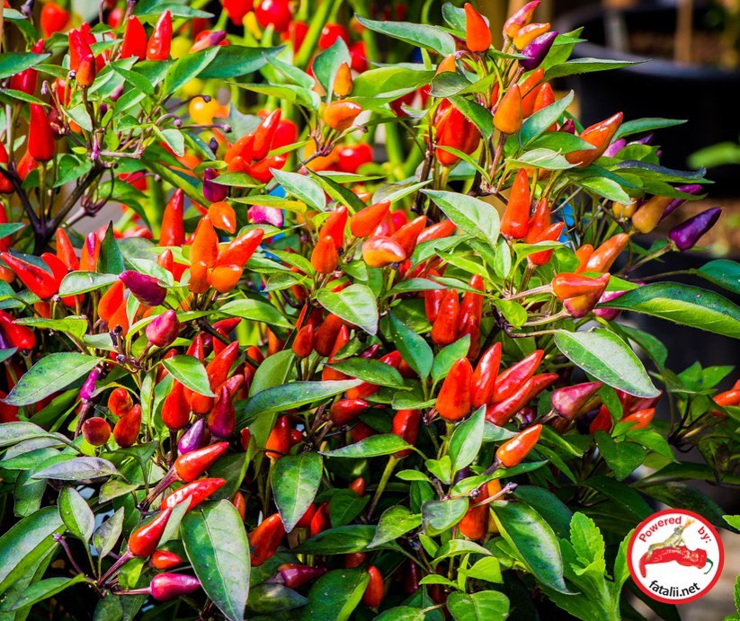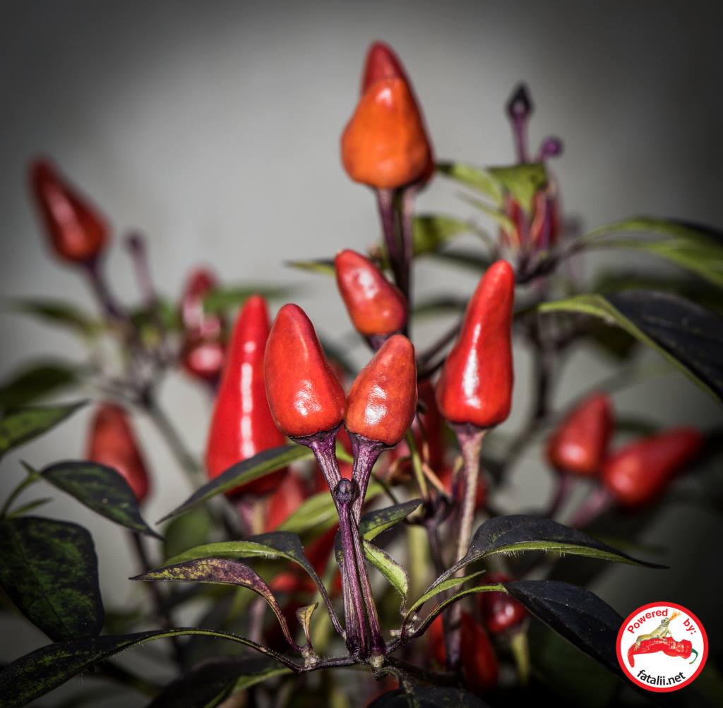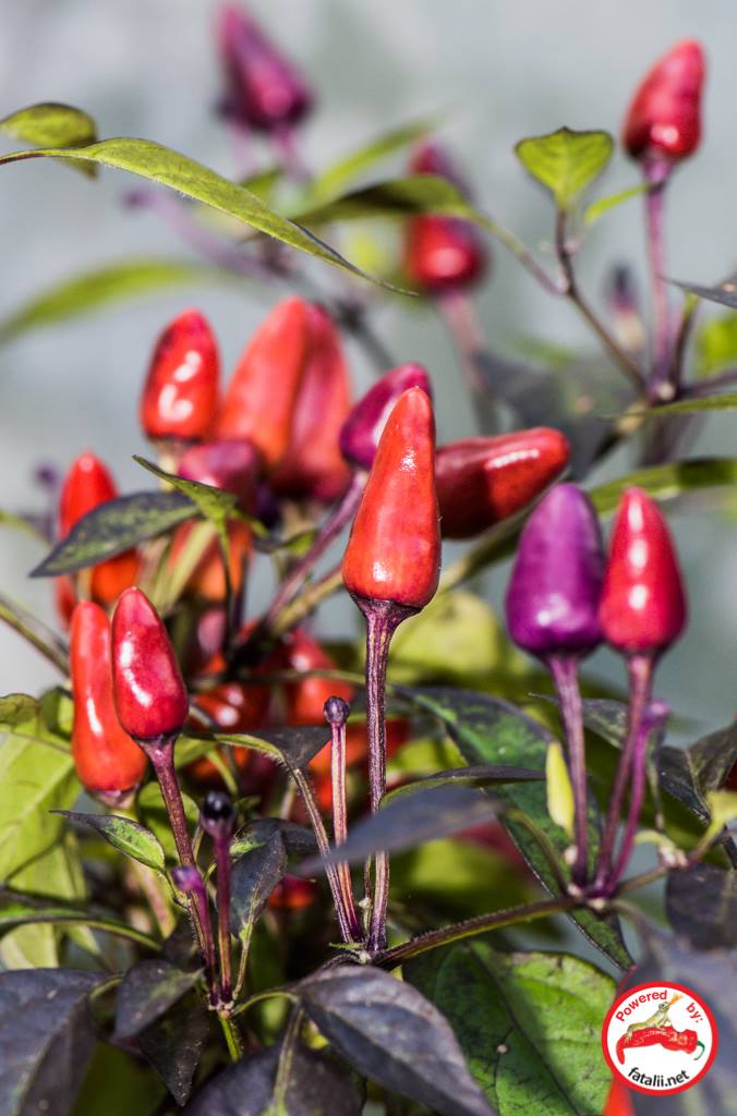 Very pretty ornamental pepper which ripens from purple to pink, to red in shades of different colors in between. Looks great when maturing. Not as hot as many other ornamental peppers. The powder is better than most ornamentals also. Very compact plant. Pretty as small ornamental pepper or bonchi.