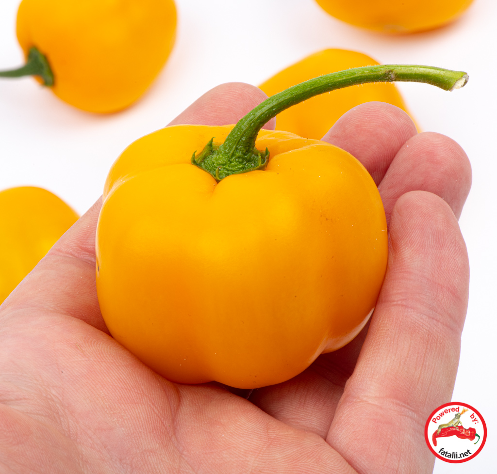 A wonderful, yellow Rocoto variety. These pods can get very big sometimes. The plant actually produces excellent yields of these quite hot, juicy and thick fleshed pods, typical for C. pubescens species. The aroma is absolutely great! Great for all kinds of cooking or for Rocoto rellenos (sttuffed rocotos!). Tthese also love cooler nights but also tolerate hot very well in the daytime.